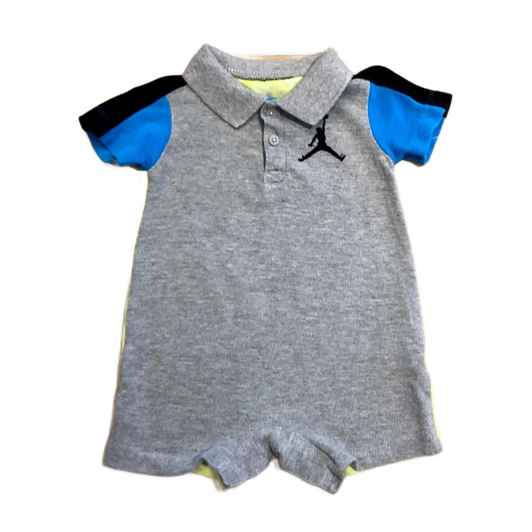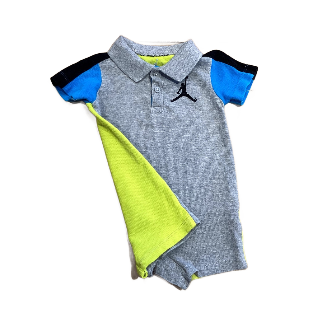 0-3 Boys Jordan Gray, Blue, and Yellow Polo Onesie with Basketball Decal