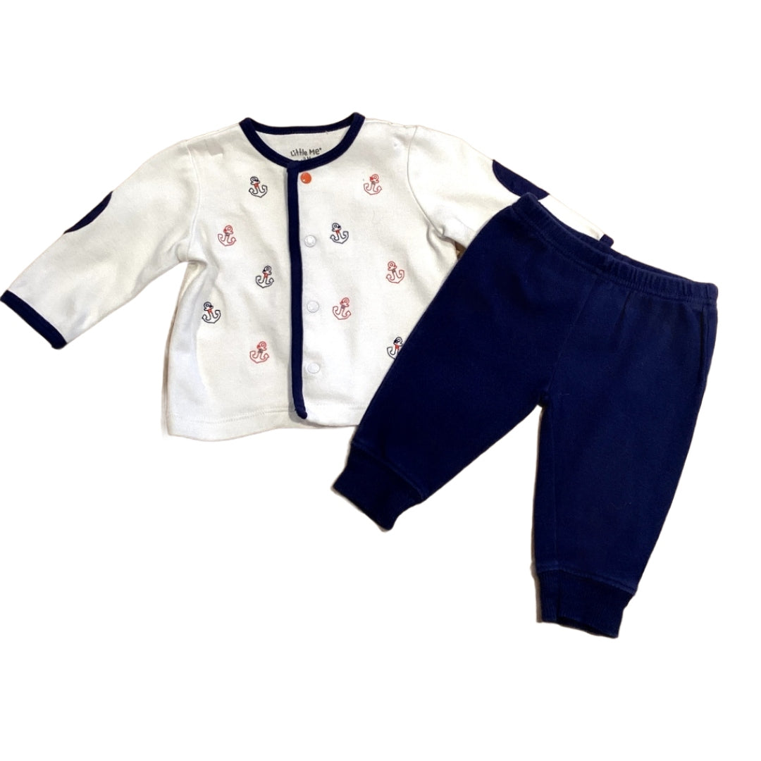 0-3 Boys Little Me White and Navy Blue Anchor Jacket, Just One You Navy Blue Leggings