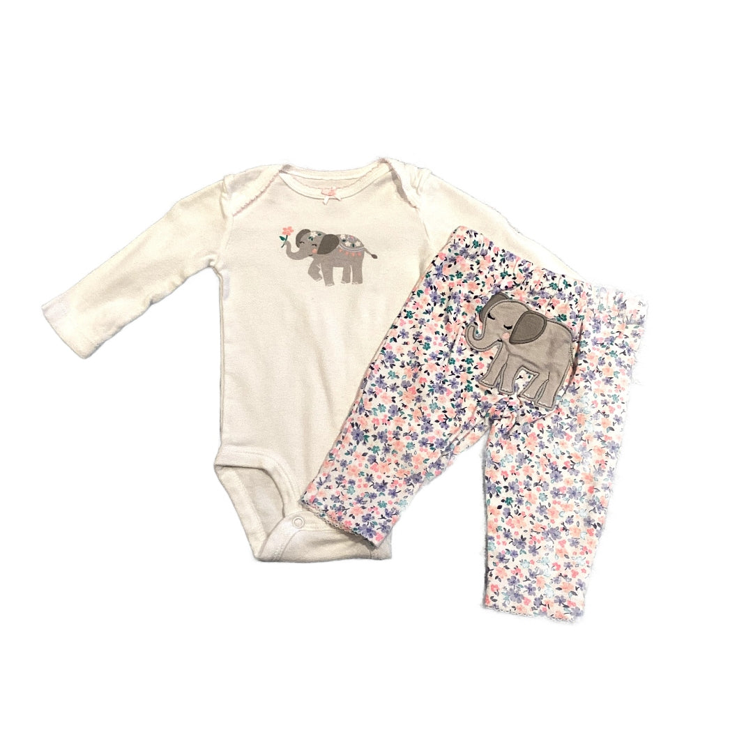 0-3 Girls Carter's Elephant Long-Sleeved Onesie, Carter's Floral Leggings with Elephant on Bum