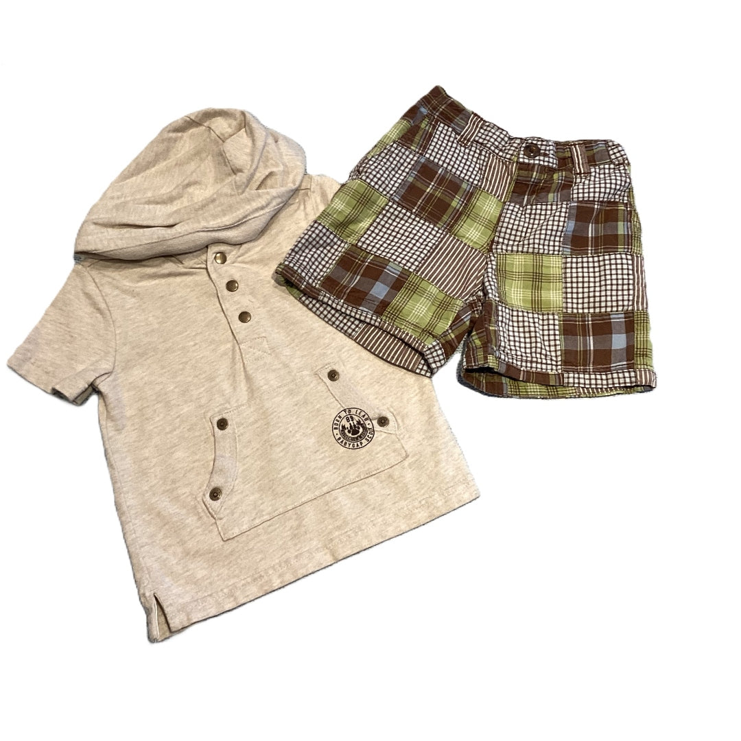 12-18 Boys Baby Gap Heayweight T-Shirt with Hood, Gymboree Plaid Shorts