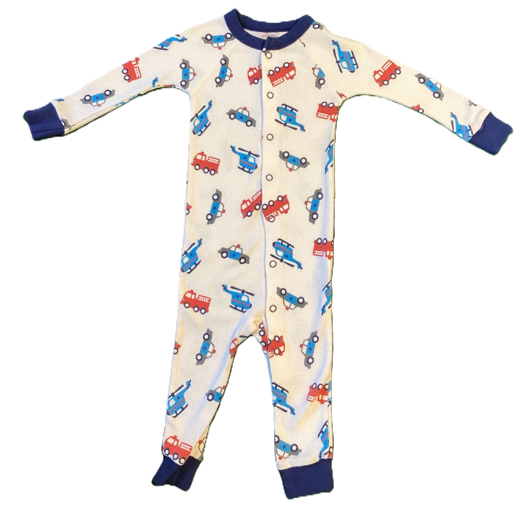 12-18 Boys Just One You White Waffle Sleeper w/Helicopters