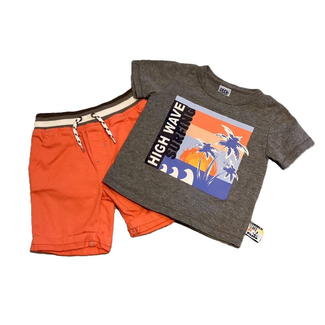 12-18 Boys Little lad Beach T-shirt, Orange Shorts