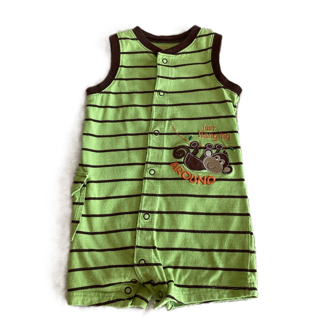 18-24 Boys Carter's Chartreuse/Brown Romper w/Monkey