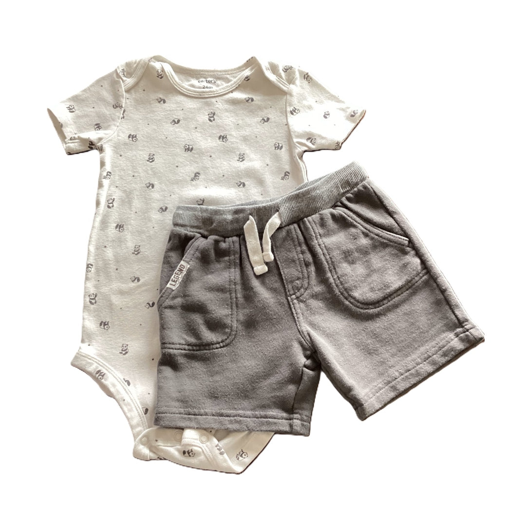18-24 Boys Carter's White Onesie w/Pandas, Simple Joys Gray Shorts