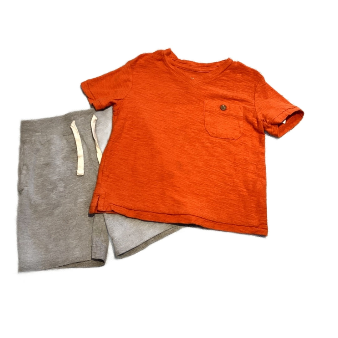 2T Boys Baby Gap Orange V-Neck Tshirt, Baby Gap Light Gray Cloth Shorts