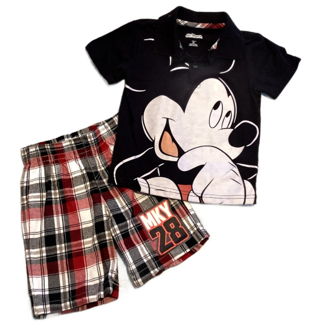 2T Boys Mickey Mouse Clubhouse Mickey Polo, Matching Plaid Shorts