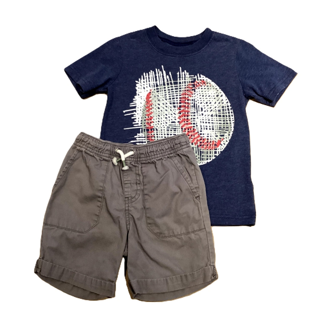 3T Boys Carter's Blue Baseball Tshirt, Cat & Jack Gray Shorts