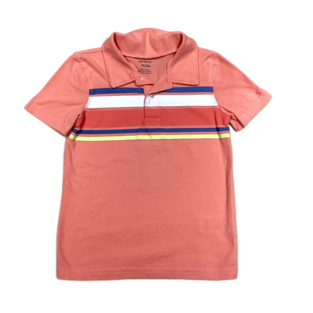 3T Boys Carter's Peach Polo w/ Multi-colored Chest Stripes