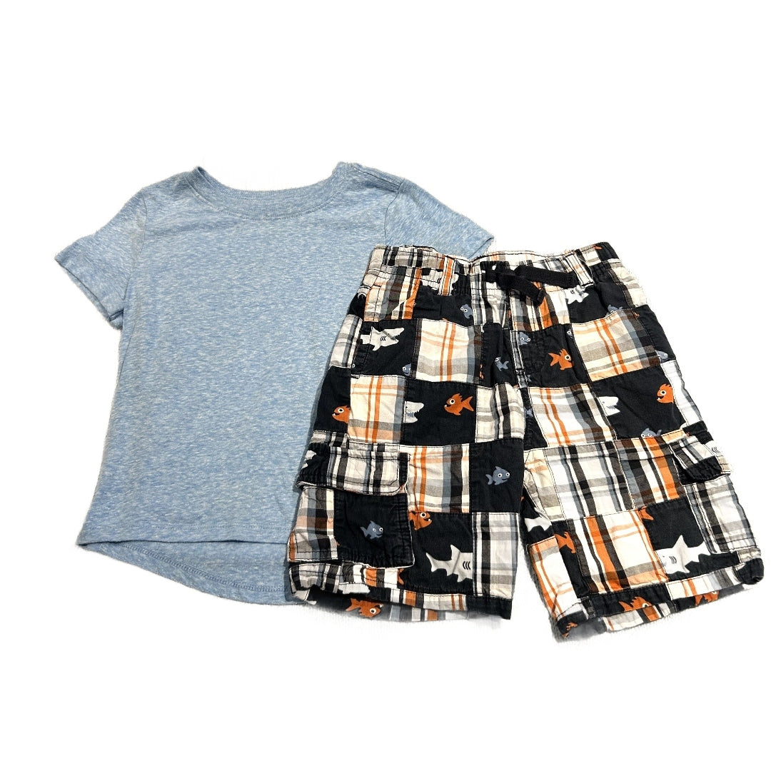 3T Boys Cat & Jack Light Blue Tshirt, Gymboree Plaid Fish Shorts