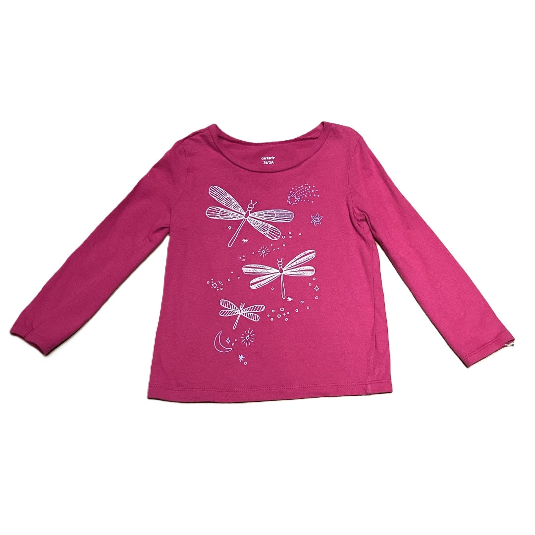 3T Girls Carter's Hot Pink Long Sleeve Shirt w/Dragonflies