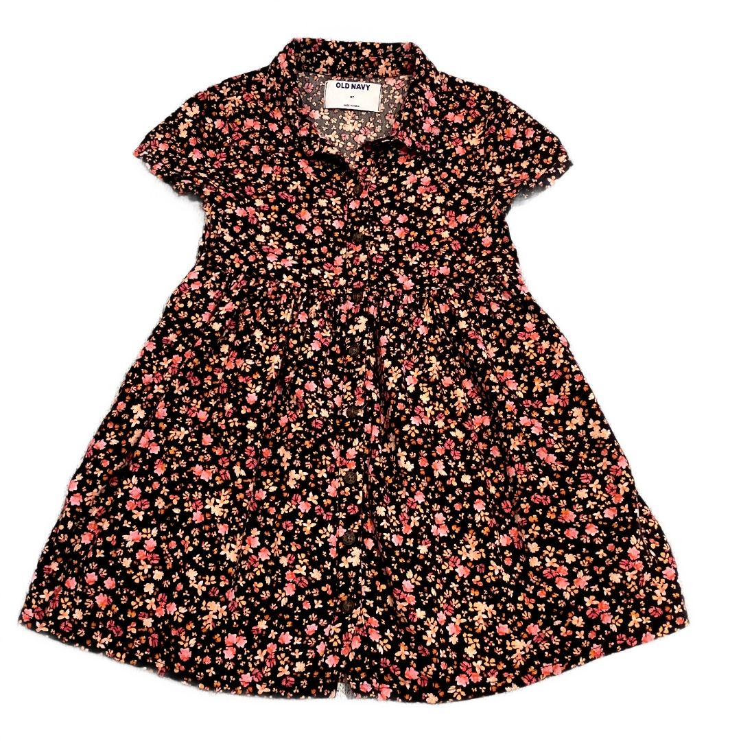 3T Girls Old Navy Black Dress w/Pink/Orange Flowers