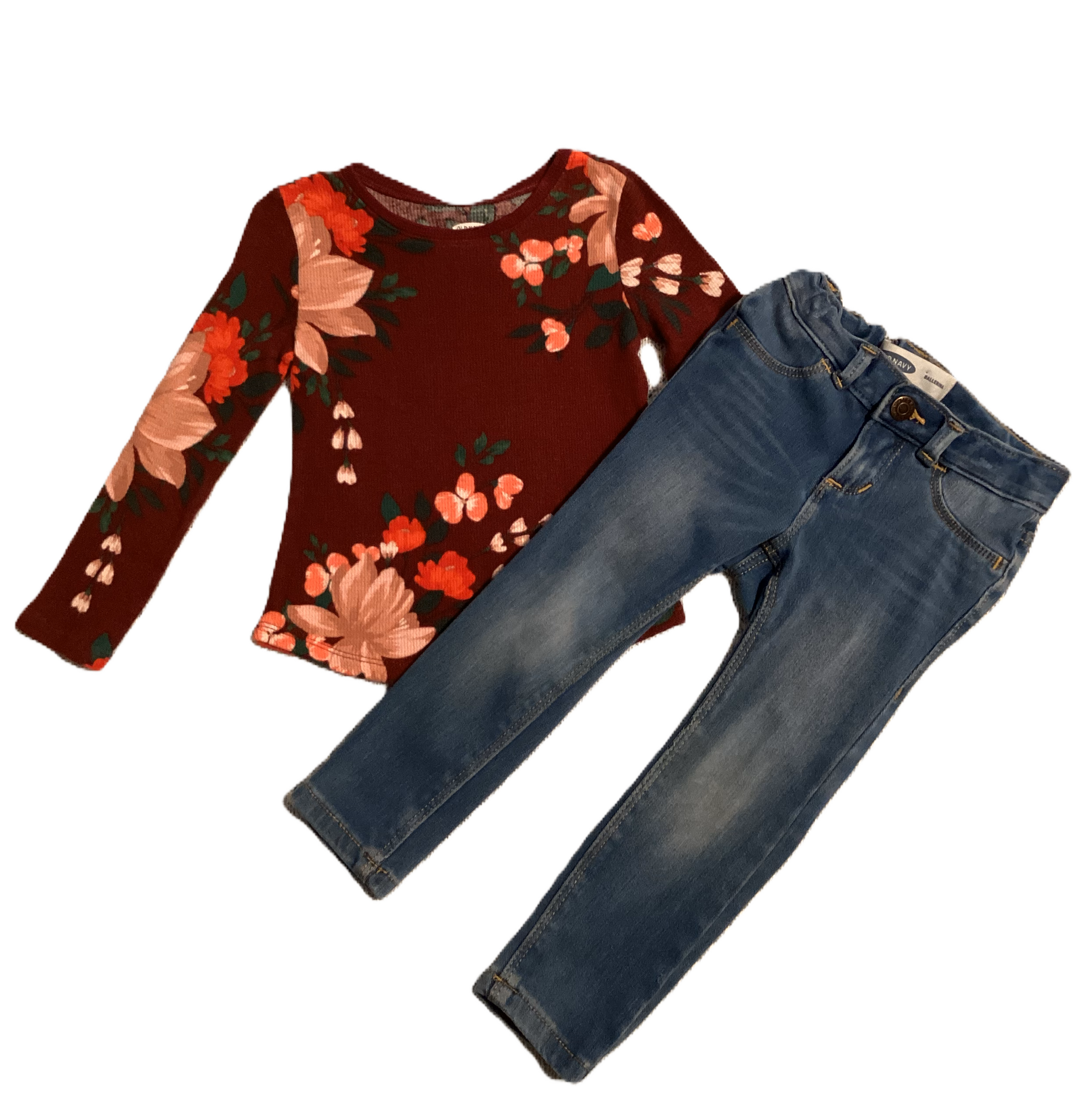 3T Girls Old Navy Burgundy Floral Waffle Shirt, Old Navy Jeans