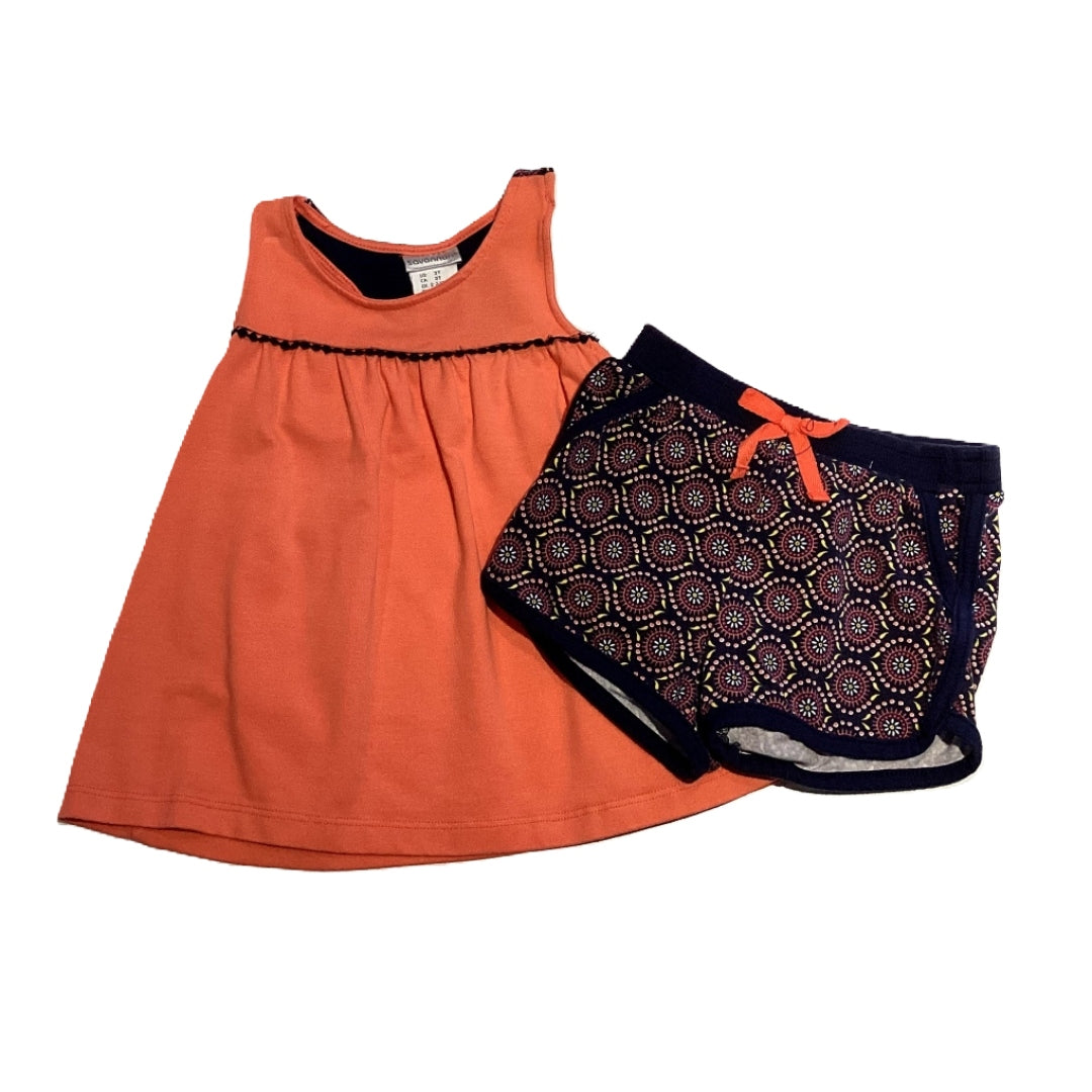 3T Girls Savannah Orange Racerback Tank Top with Patterned Back, Matching Patterned Shorts