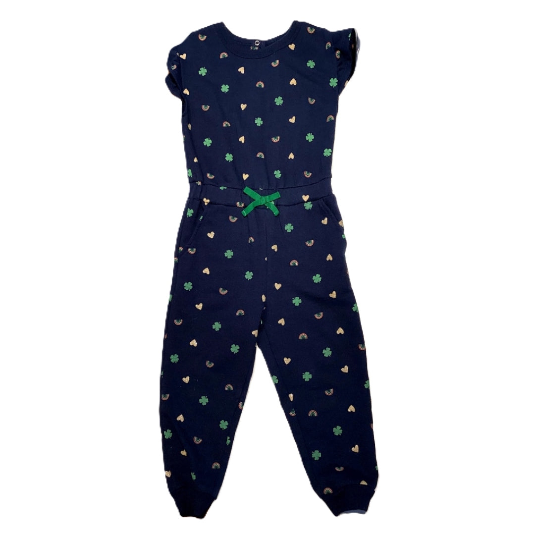 3T Girls Wonder Nation Navy Blue Shamrock and Rainbow Patterned Romper