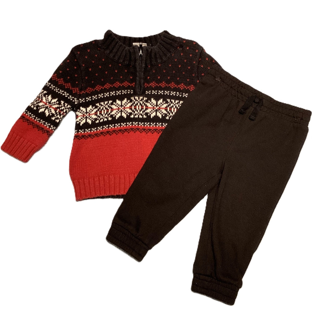 9-12 Boys Perfectly Dressed Fair Isle Half Zip Sweater, Jumping Beans Pants