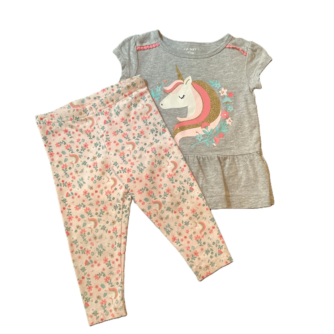 9-12 Girls Carter's Gray Unicorn Shirt w/Matching Capris