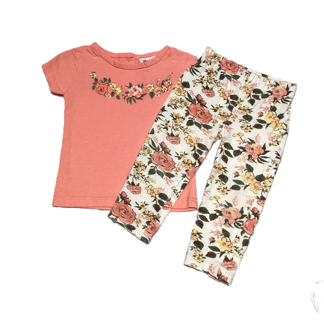 9-12 Girls Little Lass Peach Shirt w/Floral Neckline, Matching Pants